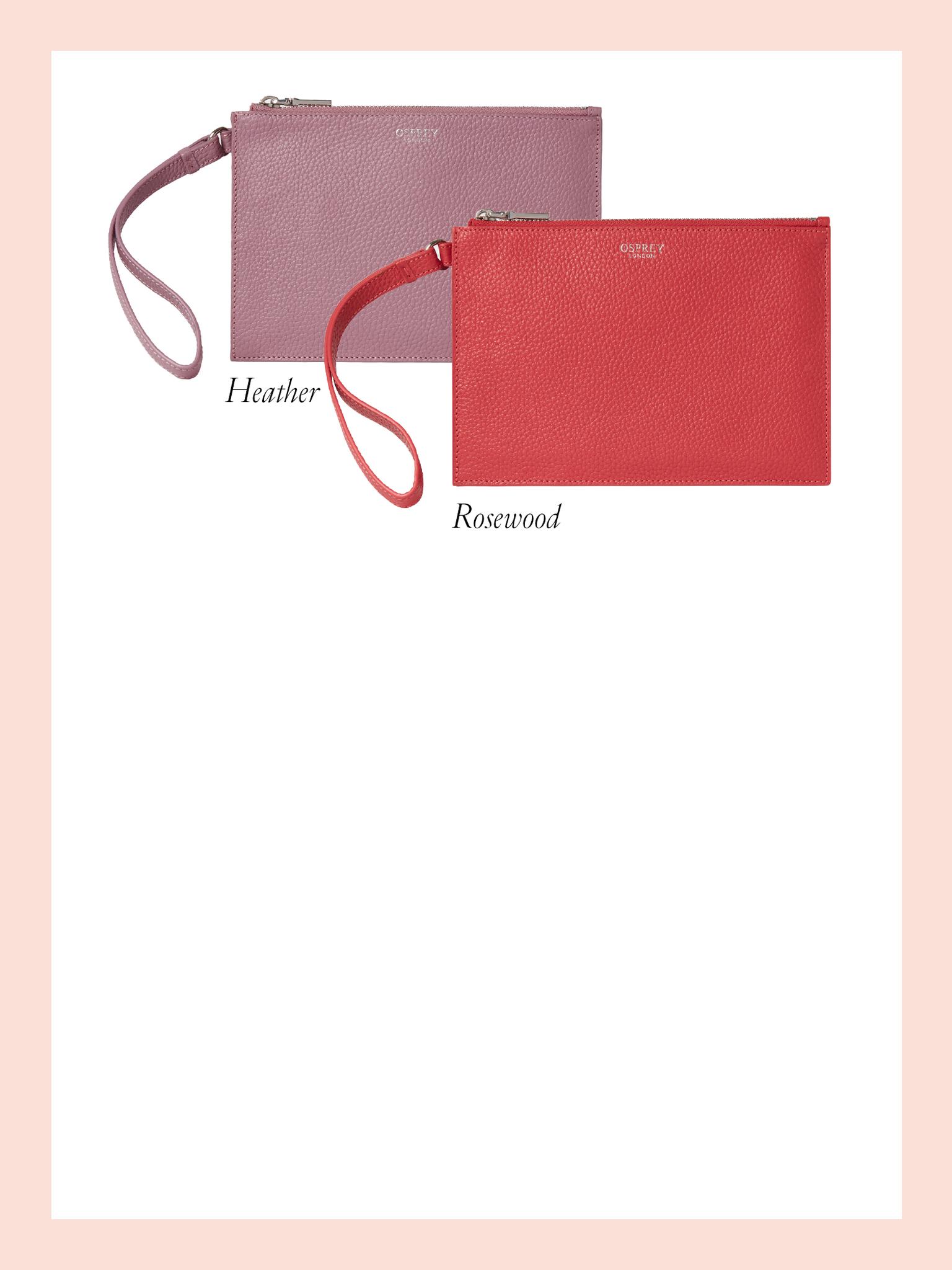 The Neptune Leather Mirror Card Holder and Small Pouch in Hot Pink
